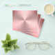Este folleto es de doble cara. Ambos lados tienen un aspecto de metal cepillado rosa en un patrón radial.