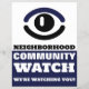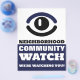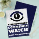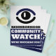 Viendo Ojos, Volante de advertencia de vigilancia comunitaria de barrio cerca de la tienda de tarjetas de visita.