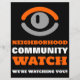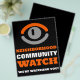 Viendo Ojos, Volante de advertencia de vigilancia comunitaria de barrio cerca de la tienda de tarjetas de visita.