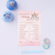 Prueba lo bien que tus invitados conocen a la futura madre con este divertido y sentimental juego de ducha de bebé! Diseñada con un transporte vintage de bebés en tonos rosa suave, esta elegante tarjeta de juegos es perfecta para una celebración de una ducha infantil elegante y atemporal.