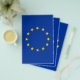 Bandera azul con estrellas amarillas. Bandera oficial de la Unión Europea. Grandes regalos y mercadería de la bandera de la UE.
