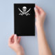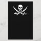 Personaliza fácilmente este divertido gráfico de cráneo pirata Jolly Roger moderno de niños y cruza la bandera de espadas en un fondo negro. Puede cambiar fácilmente el color de fondo de un rango de más de 200 colores.
