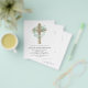 Eucalyptus y Invitaciones al Bautismo Religioso Cristiano de Budget Sage Green Boy y Wooden Cross Botanical Greenery Watercolour.