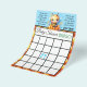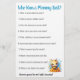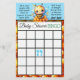 Cute bebe con la temática azul, amarilla y negra tarjeta de Baby Shower Bingo en un lado y el otro tiene el juego "Quién conoce a la mejor mamá".