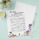 La plantilla de folleto de Bingo de Despedida de Soltera Creativo Encuentra al Invitado presenta flores silvestres, mariposas y una divertida plantilla de preguntas de bingo nupcial. Por favor, haga clic en el botón de personalizar para personalizarlo con su texto y preguntas. Visite amablemente mi tienda "loveyouart" para otros diseños similares.