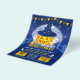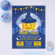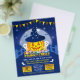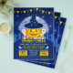 El volante de invitación Trunk o Treat de Halloween incluye una calabaza linda para niños con un gorra azul lleno de estrellas brillantes, fantasmas blancos, caramelos, murciélagos, una pancarta colorida, una luna iridiscente brillante, nubes y estrellas brillantes con una cerca y un camino.