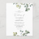 ****** EL PAPEL MATTE ES DELGADO. ACTUALIZAR PARA UN PAPEL MÁS ESPESO. Sobres no incluidos. PARA EL ALMACENAMIENTO DE TARJETAS, TARJETAS MÁS ESPESOSAS, COMPRUEBE EL ENLACE QUE FIGURA A CONTINUACIÓN. ALMACENAMIENTO DE TARJETAS, TARJETAS MÁS ESPESOSAS TIENEN UNA OPCIÓN PARA LOS ENVELOPES O LOS INCLUYEN******** Sin sobres, versión de volante de papel. Ahorre dinero en invitaciones formales con esta invitación en papel. Prepárese para su boda con este dúo rústico de eucalipto verde en la invitación a la boda blanca. ¿Quieres este diseño en un papel más grueso para las tarjetas? Consulte nuestra colección de tarjetas de bodas Rustic Eucalyptus Greenery Duo. https://www.zazzle.com/collections/rustic_eucalyptus_duo_greenery_invitations-119005015041666857?rf=238937196885903396
