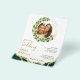 Crea elegantes invitaciones de bodas verdes esmeraldas para tu boda de temas de tono de joyas que presentan la corona de eucalipto y un patrón de estilo agate decorado con un falso purpurina de oro. Por favor, cargue su foto usando la plantilla para tener su imagen en forma redonda. La foto cuadrada es la mejor, pero también se puede probar a otros para ver si se adaptan aquí. Personalice las invitaciones con sus nombres, fecha, lugar e iniciales en el frente y en el reverso. Se puede personalizar aún más dentro de la herramienta de diseño.