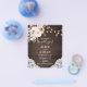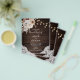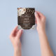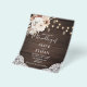 La invitación a la boda rústica Boho incluye luces de cuerda, flores neutras y pasto pampa sobre un fondo de madera.