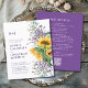 Viajero de Invitación a Boda de Monograma de Lavanda y Girasol de Cuadros... Simbolismo giratorio: felicidad, alegría, amor duradero. Simbolismo floral de lavanda: amor y devoción, calma. Nuestra invitación a una boda floral en papel de volante de presupuesto "All in One" incluye un hermoso ramo de girasoles acuáticos y lavanda que desprenden las iniciales del monograma de la novia y el novio y el texto de la invitación que hay a su lado. La parte trasera oscura de la invitación contiene todos los detalles que normalmente verías en tarjetas separadas dentro del paquete boda. Esta moderna invitación a las bodas de doble cara fue diseñada para ser elegante y consciente del presupuesto... sin mencionar el ahorro de tiempo. En la parte posterior también hay un gráfico de código QR que puede reemplazar con su propio código escribiendo la URL de su sitio web boda en la plantilla de personalización. Todo el texto de ejemplo se puede revisar fácilmente con su propia información sobre la misma plantilla. **NOTA: El documento de presupuesto "Volante" no es el mismo que las tradicionales invitaciones a tarjetas planas o incluso nuestras invitaciones presupuestarias de 110 libras. La opción de volante es la menos costosa de nuestras invitaciones, con papel de 80 lb (similar al papel de folleto) comparado con las tradicionales tarjetas planas de invitación a bodas a 5 x 7 pulgadas en papel mate a un peso de 120 libras. Además, las invitaciones presupuestarias no vienen automáticamente con sobres, al igual que las tarjetas de invitación tradicionales, pero puedes comprarlas en la misma página al realizar el check out si lo deseas.