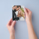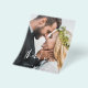 Boda de presupuesto Escrito a mano Gracias Tarjetas que tienen una foto en la parte delantera y trasera. Las tarjetas de agradecimiento contienen una moderna tipografía de escritura cursiva con letras blancas y negras que son elegantes, simples y modernas para usar después de la minimalista celebración del día de la boda.