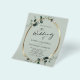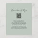 Presupuesto Eucalyptus Gold QR Código RSVP Invitación a la boda sabia... Nuestro folleto de invitación a bodas botánicas QR Code RSVP incluye un falso marco dorado oval adornado con hojas de eucalipto de color esmeralda sobre un fondo de sabio ligero. La caligrafía moderna de moda muestra el texto para "el Boda de", "y" así como la "recepción a seguir" acompañada de una elegante tipografía serif para el texto que puedes personalizar. El sabio de la invitación muestra el código QR de su sitio web boda, así como la propia dirección URL del sitio web, lo que permite a los invitados acceder fácilmente a RSVP en línea y ver todos los detalles que normalmente se envían en un paquete boda. Esta moderna invitación a la boda fue diseñada para ser a la vez elegante y de bajo costo... por no hablar de ahorrar tiempo. El gráfico de código QR de ejemplo y todo el texto de ejemplo (aparte de los elementos caligráficos gráficos) se pueden revisar fácilmente con su propia información sobre la plantilla de personalización. ***NOTA*** El documento para nuestra invitación más asequible es de 80 libras de peso y el espesor del papel más usado en los folletos de negocios y eventos. Su recurso de suministro de oficina o tienda en línea podrá suministrar los sobres A6 para estas invitaciones. Nuestra colección de caligrafía moderna Eucalyptus Gold Sage incluye una invitación de presupuesto de código QR de peso algo más pesado, así como tarjetas planas bodas tradicionales con su código QR.