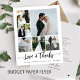 Elegante estilo de escritura a mano amor y gracias boda de guiones pareja multifoto nombre de collage y mensaje de texto personalizado gracias tarjeta de corazón PAPER FLYER plantilla. Fácil de personalizar en ambos lados con su texto y 6 imágenes. +++++++++++++++++++ LEA ESTO ANTES DE COMPRAR! Esta es una tarjeta de presupuesto impresa en un FLYER (papel tipo publicidad). +++ Por favor, tenga en cuenta que el PAPEL PRESUPUESTARIO ES DELGADO - Puede actualizar para que esta tarjeta se imprima en el material gráfico ++++ ENVELOPES NO INCLUIDOS. +++ Compruebe dos veces toda la información y la ortografía del texto porque recibirá exactamente lo que ve - nadie más comprobará nada antes de imprimir. ++++ Esta tarjeta está diseñada para el tamaño de 4,5" x 5,6". En el funda usted elige otro tamaño de la tarjeta y el texto sale de la página, todo debe ser corregido antes de añadir el producto al carrito. Por favor, pida ayuda al servicio de diseño en vivo.
