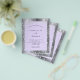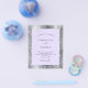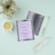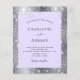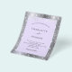 Una invitación de boda moderna y elegante. Metalizado plateado falso y violeta, fondo de color lavanda decorado con polvo de brillo plateado falso. Personalice y agregue sus nombres y detalles de la boda. Letras de color negro.