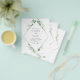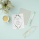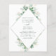 Invitaciones de boda de primavera con eucalipto botánico y geométrico verde y dorado en acuarela sobre fondo blanco - incluye tipografía de guión hermosa y elegante con hojas botánicas modernas y vegetación para la celebración especial del día de la boda.