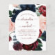 Presupuesto Romántico Borgoña, Blanco y Azul Marina Moderno y Elegante Floral y Eucalyptus Invitaciones a la Boda Primaria - incluye hermosa y elegante tipografía de escritura con flores botánicas modernas y vegetación para la celebración especial del Día de la Boda.