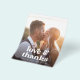 Esta es una tarjeta de agradecimiento de un boda bohemio económico usando un tipo de letra retro de estilo vintage junto con un diseño fotográfico moderno y simple, impreso en un volante de papel. El reverso incluye una segunda foto y un mensaje de agradecimiento que puede personalizar. Cambie fácilmente los colores, el texto y las fotos según sea necesario. Póngase en contacto con el diseñador para cualquier consulta relacionada con este diseño.