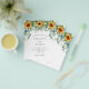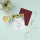 Tenga en cuenta que esta invitación está en papel de volante y es muy delgada. Los sobres no están incluidos. Para invitaciones más gruesas (el mismo diseño) visite nuestra tienda. En la parte delantera, un fondo blanco decorado con girasoles y vegetación eucaliptica. Personalice y agregue sus nombres y detalles del fiesta. Volviendo: un fondo de color rojo y marrón