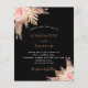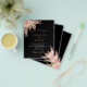 Tenga en cuenta que esta invitación está en papel de volante y es muy delgada. Los sobres no están incluidos. Para invitaciones más gruesas (el mismo diseño) visite nuestra tienda. Para un boda moderno de estilo boho. Un elegante fondo negro. Decorada con rosa de oro y flores rosadas, rosas y pampas. Personalice y agregue nombres y detalles.
