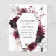 El presupuesto de Halloween del 31 de octubre otoño color de agua oscuro color rojo de la Borgoña Invitaciones a la boda sobre el fondo negro - incluye tipografía de escritura aterradora y escalofriante y elegante con flores modernas y alas murciélago para la celebración especial del Día de la Boda Sombrerosa.