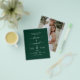 Boda verde esmeralda del presupuesto primavera o foto de verano sobre invitaciones a la boda posterior - incluye una tipografía de escritura hermosa y elegante con un moderno color simple y clásico para la celebración especial del Día de la Boda.