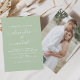 Budget Sage Green Boda Spring o Summer Photo on Back Wedding Invitaciones - incluye hermosa y elegante tipografía de escritura con un moderno color simple y clásico para la celebración especial del Día de la Boda.