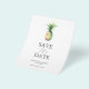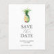 Anuncie su compromiso con este presupuesto moderno, guarde la hoja de fechas. Presenta mi piña acuarela original. Utilice los campos de plantilla para personalizar con su nombre y fecha de boda. Diseño tropical para bodas de destino. Para ver la suite de papel boda correspondiente, visite www.zazzle.com/dotellabelle