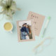 Boda de presupuesto Boho Terracotta Salven las tarjetas de fecha que tienen una foto en el frente. Las tarjetas Save the Date contienen una moderna tipografía de escritura cursiva con letras a mano que son elegantes, simples y modernas para usar después de la minimalista celebración del día de la boda.