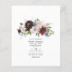 Invitación a la boda con flores de peonía y hojas de eucalipto bebé en acentos de burdeos, vino, azul polvoriento y rosa rubor. Ideal para cualquier tema o boda en el jardín. Tenga en cuenta que esta invitación presupuestaria está en papel de volante y es muy delgada. Los sobres no están incluidos. Para obtener invitaciones más gruesas con sobres incluidos y productos coincidentes sobre el mismo tema, consulte la colección que aparece a continuación.