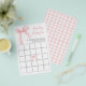 Tarjeta de juego de Bligo Shower y bebé preppy de gingham rosa con arco rosado.