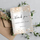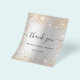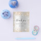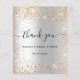 Por favor, tenga en cuenta que esta nota de agradecimiento está en papel de volante y es muy delgada. Los sobres no están incluidos. Para tarjetas de agradecimiento más gruesas (mismo diseño) por favor visite nuestra tienda. Una nota de agradecimiento por una ducha de novia. Un falso fondo metálico plateado. Con polvo falso purpurina de oro. En el frente del guión con letras a mano y el texto: Gracias, tu texto, título y una fecha. Atrás: Personaliza y agrega tu nota de agradecimiento y nombre.
