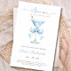 A trendy baby boy shower theme in dusty blue. This collection pairs a coquette blue bow with the classic martini glass, while soft watercolor blue stripes on the back complete the look. The design creates a unique baby shower cocktail theme that feels elegant, modern, and timeless.