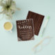 Budget Rustic Wood and String Lights Lace Wedding Invitations featuring a rustic wood background with twinkling strings of lights and vintage style lace in the bottom corners. The word wedding is set off in elegant yet rustic typography, making this the perfect design for your boho or country wedding.