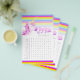 Flyer Búsqueda de palabras de arte acuarela de unicornio