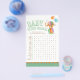 Flyer Búsqueda de palabras para baby shower de elefante