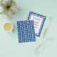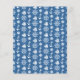 Elegante patrón marino/costero azul y blanco con rueda de barco, brújula, ancla y barco de vela.