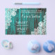 volantes promocionales de madera de granero azul turquesa encaje blanco rústico