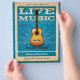 ¿Listo para promocionar tu concierto de música? Personaliza este increíble cartel de música en vivo con guitarra acústica con toda la información para atraer a los fanáticos de la música. Guitarra acústica con texto de MÚSICA EN VIVO. Edita o elimina las líneas de texto que no necesites.
