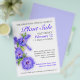 Perfecto para sus promociones de venta de plantas de verano o evento de venta de plantas de caridad. El diseño presenta una ilustración botánica de acuarela de arte fino de un hibisco de Sarah Trett. La parte posterior del folleto es de color púrpura claro liso. El folleto de venta de plantas está listo para que lo personalice con su propio texto promocional. Utilice un stock ligero si planea doblar estos folletos. Diseñado y pintado de manera única por Sarah Trett.
