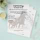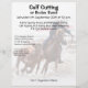Un folleto para organizadores de eventos de equitación western, con una imagen de un caballo y jinete cortando un ternero en una competencia. El texto es una plantilla para cambiar a su información, pero se puede agregar más texto si es necesario usando el botón de personalizar.