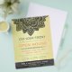 Estudio de Terapia de Masaje YOGA / Plantilla de Volante de Casa Abierta Salón de Belleza - Elegante Moda Negro y Oro Mandala Floral Damasco de fondo. Ideal para el Instructor de Meditación YOGA / Terapia de Masaje / Salón de Belleza de maquillaje / Estilista de pelo / Peluquería, Estilista, Cosmetólogo, Profesionales de Belleza y Creativo. Fácil de personalizar con tu propio texto e imágenes - hazlo tuyo.