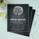 Moderno Yoga Studio Meditation Instructor / Coach de vida / Healer / Reiki Master / Massage Therapy Open House Flyer Template - Elegante Árbol acuático negro y plateado.