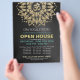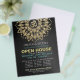 Flyer Casa de YOGA Abierta Símbolo Mandala Om Dorado