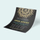 Plantilla de folleto de Casa Abierta de estudio de instructor de meditación de YOGA elegante - Mandala floral y símbolo Om de pan de oro elegante en fondo de textura negro oscuro.