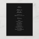 ****** EL PAPEL MATTE ES DELGADO. ACTUALIZAR PARA UN PAPEL MÁS ESPESO. Sobres no incluidos. PARA EL ALMACENAMIENTO DE TARJETAS, TARJETAS MÁS ESPESOSAS, COMPRUEBE EL ENLACE QUE FIGURA A CONTINUACIÓN. ALMACENAMIENTO DE TARJETAS, TARJETAS MÁS ESPESOSAS TIENEN UNA OPCIÓN PARA LOS ENVELOPES O LOS INCLUYEN******** Sin sobres, versión de volante de papel. Ahorre dinero en invitaciones formales con esta invitación en papel. Informe a sus huéspedes con su programa de ceremonias de boda con sus programas de ceremonias de boda blancas y elegantes. ¿Quieres este diseño en una tarjeta, papel más grueso para el stock de tarjetas? Consulta nuestra colección de tarjetas. https://www.zazzle.com/collections/elegant_black_white_invitation_suite-119628809890337882?rf=238937196885903396