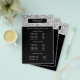 Diseño de folleto Glamorous y Stylish que muestra sus servicios, lista de precios o información comercial sobre una imagen digital de patrón de brillo plateado. Superposición de franja negra.