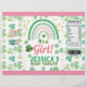 Tema: El Día de San Patricio, el Shamrock arcoiris. Ocasiones: Chica Baby Shower. Estilo: Agradable, Elegante, Boho. Colores: Verde, Rosa, Oro, Blanco. Gráficos: Arcoiris, acuarela, falso oro.