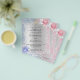 Tenga en cuenta que esta invitación está en papel de volante y es muy delgada. Los sobres no están incluidos. Para invitaciones más gruesas (el mismo diseño) visite nuestra tienda. Un bautismo moderno y elegante, que celebra a dos bebés, un chica y un niño. Fondo de aspecto metálico falso plateado decorado con chispas purpurinas azules y rosas, cruz dorada y flores rosadas y azules, flores. Personalice y agregue nombres y detalles de la ceremonia. Letras de color negro.