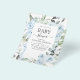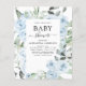 Invitaciones de baby shower de primavera o verano con flores de rosa azules polvorientas y eucalipto botánico con presupuesto - incluye una tipografía de guión hermosa y elegante con flores botánicas modernas y vegetación para la celebración especial de la futura madre para la llegada de un bebé o una bebé