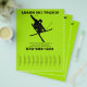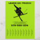Promociona tus clases de esquí con este llamativo volante. Cuenta con un gráfico de estilo silueta negra en negrita de un esquiador realizando una pista de esquí y letras negras sobre un fondo verde lima brillante y está diseñado con un estilo de tiras desmontables perfecto para promocionar tu negocio en tablones de anuncios comunitarios en cafeterías y pistas de esquí. Necesitarás usar tijeras para cortar entre cada una de las tiras.